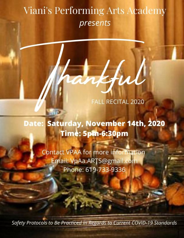 In a time where we find ourselves short on live entertainment, VPAA has made a commitment to keep the Arts alive by hosting their very FIRST production called “Thankful”. Where gathering is an issue, and our community suffers from the ‘fear’ of the unknown- our academy is committing to securing safety procedures in order to ensure social gathering safety while honoring the hard work of its current students.